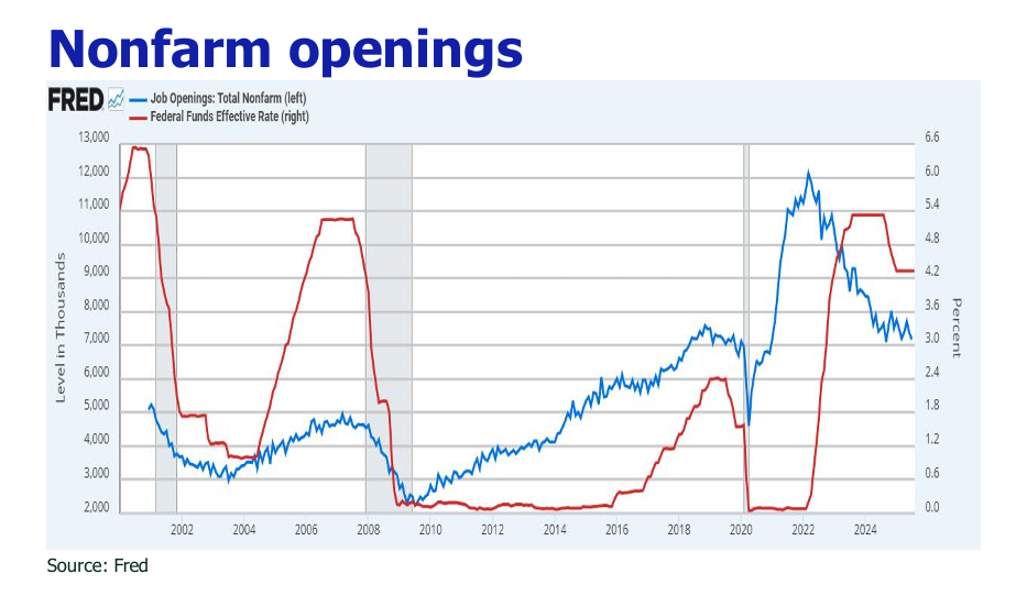 Three or two additional rate cuts are contingent on the wrestling between deteriorating labor metrics and persistent inflation.