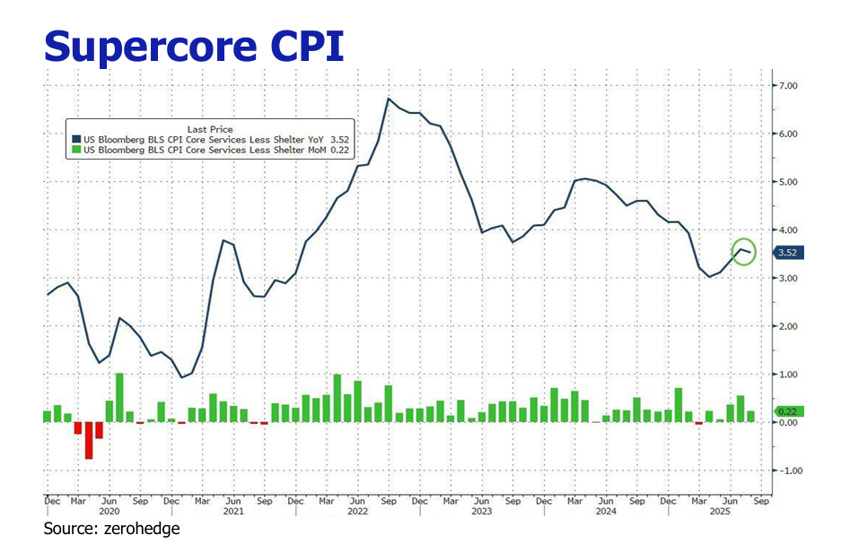 The acceleration in headline CPI with 0.2% YoY and MoM upticks compared to July, underscores the entrenchment of inflationary pressures, with the pronounced passthrough of tariffs into core goods prices signaling an incipient broadening of price gains beyond shelter and food.