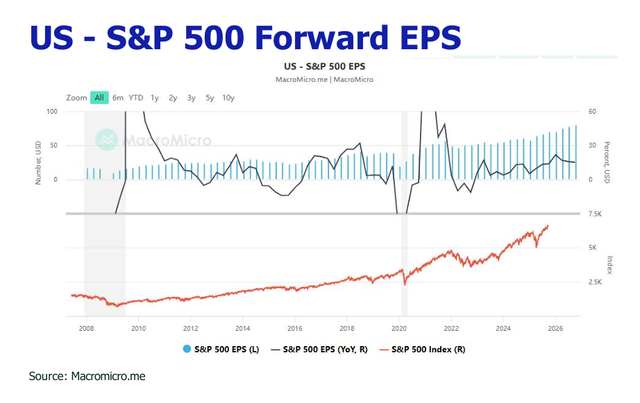 China equities: The Hang Seng Index (HSI) has demonstrated strong performance, reaching ~26,300 by September—a 29-30% year-to-date gain and a 45-56% increase over 12 months. Catalysts such as China’s AI expansion, an extended tariff truce with the U.S., rising southbound inflows, and supportive U.S. rate cuts could drive a steady PE expansion from 15x to 17x. This supports a potential HSI rise toward 28,000 in 2025 and 30,000 in 2026.